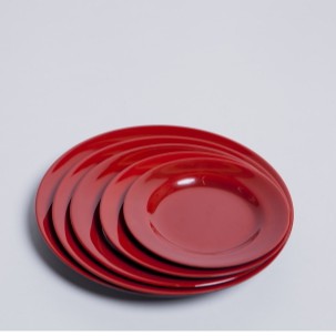 Dĩa Nhưa Tròn Cạn Melamine Đỏ Đen