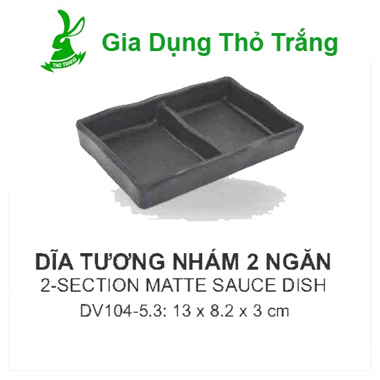 Đĩa tương nhám 2 ngăn với thiết kế độc đáo, kiểu dáng vuông cứng cáp nhưng không kém phần mềm mại do được bo cong trên viền đĩa, tiện lợi, chuyên dụng cho những món ăn BBQ, món ăn Hàn Quốc, Nhật Bản đòi hỏi sự cầu kỳ ở nước chấm.Đĩa tương tiện lợi có thể đựng cùng lúc 2 loại nước chấm khác nhau với kiểu dáng cách điệu càng tăng thêm tính thẵm mỹ trên mọi bàn tiệc.