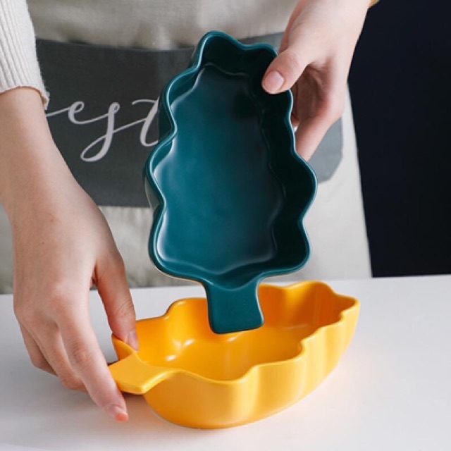 Đĩa nướng cây thông, khay sứ nướng , khuôn nướng hình lá