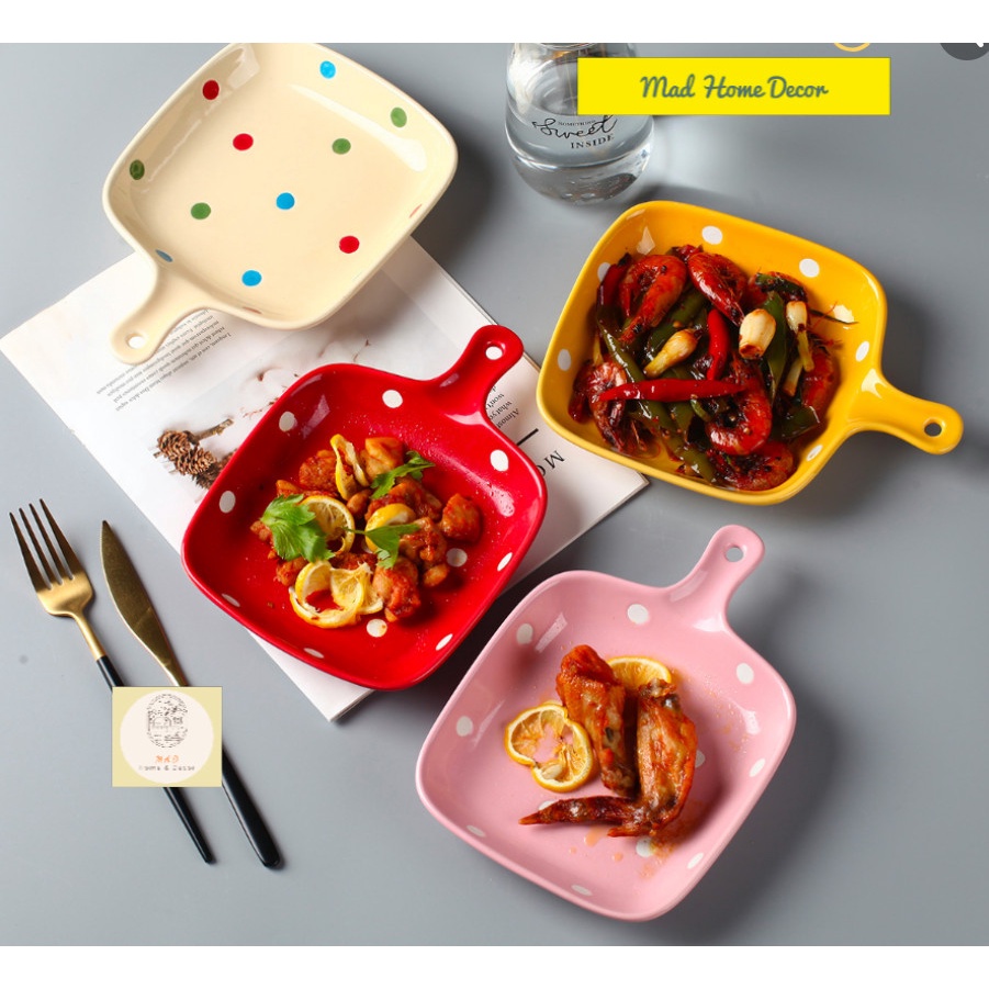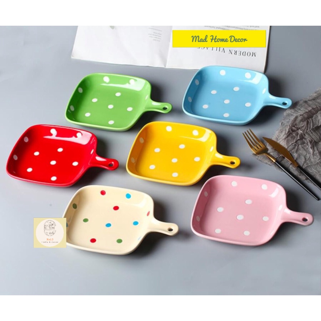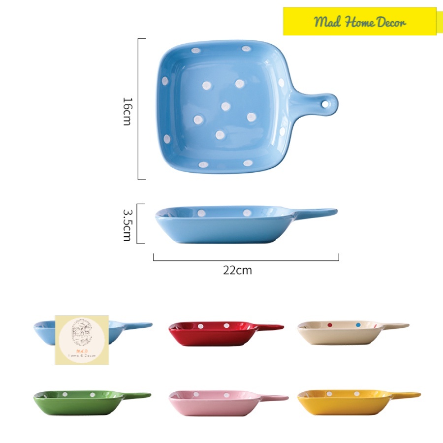 Nhà cửa & Đời sống > Bộ đồ bàn ăn > Dĩa || Đĩa nướng, khay nướng có tay cầm họa tiết chấm bi cute nhiều màu sắc - Chất liệu gốm sứ an toàn sức khỏeCòn hàng