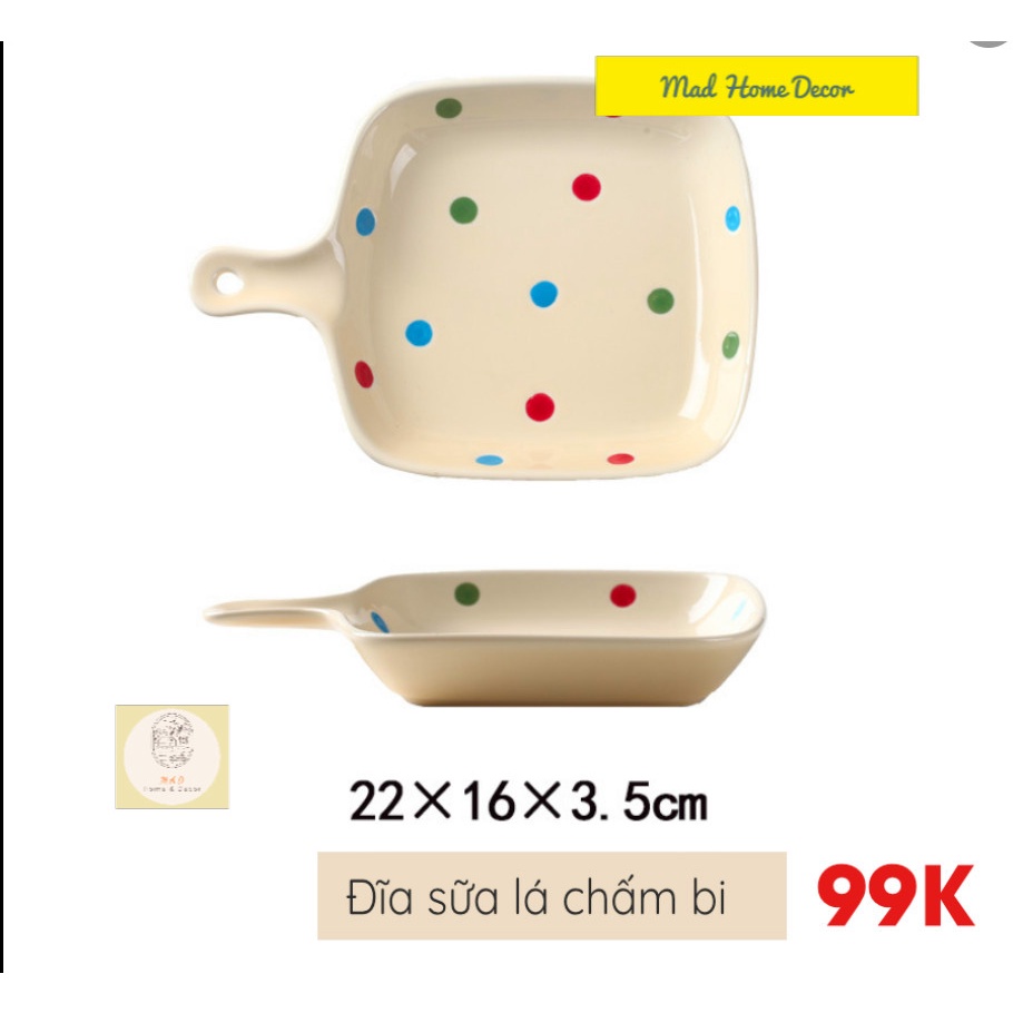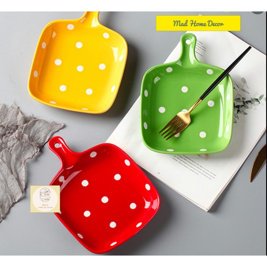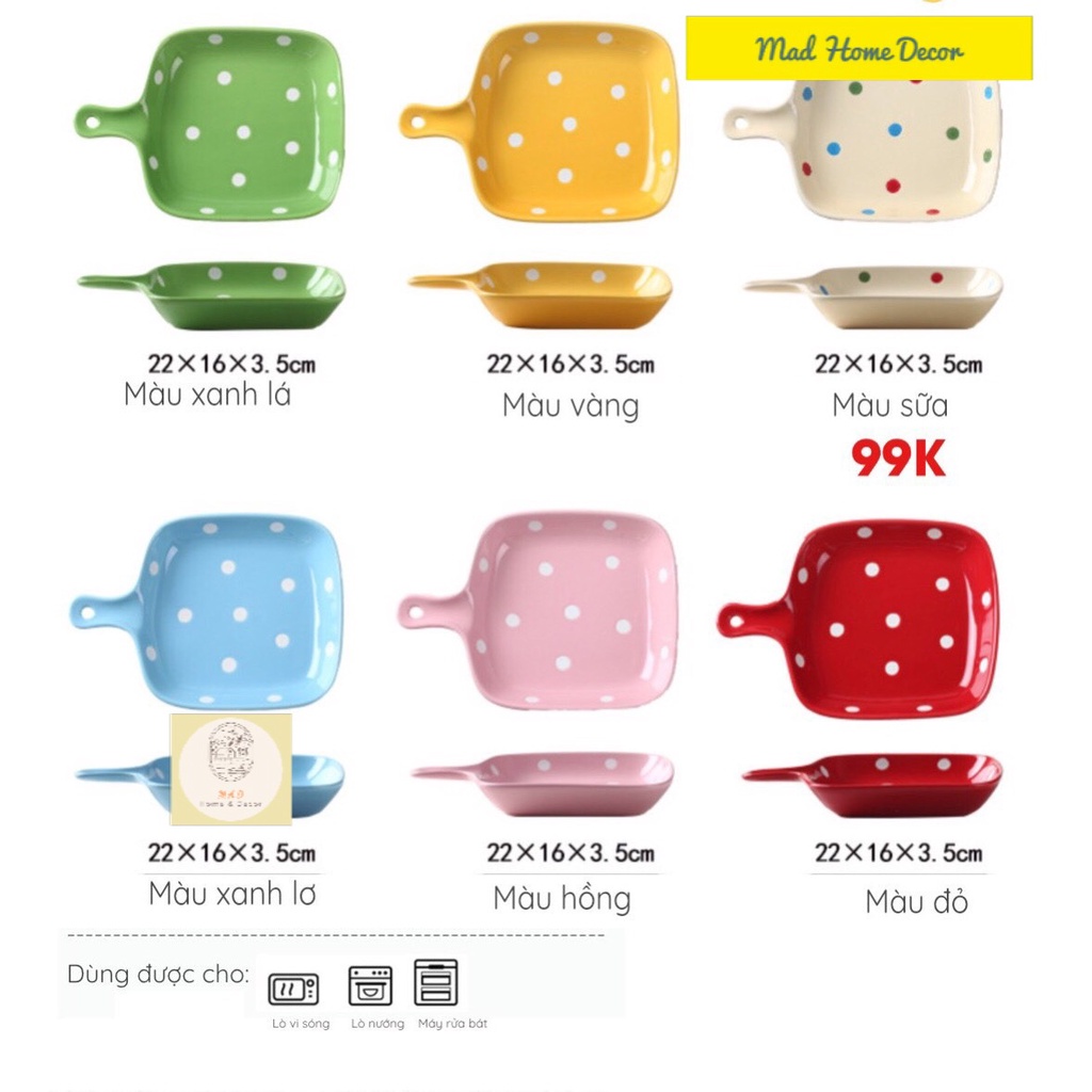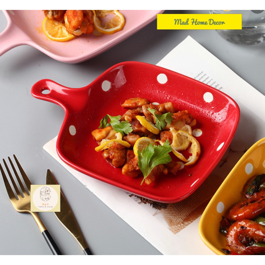 Nhà cửa & Đời sống > Bộ đồ bàn ăn > Dĩa || Đĩa nướng, khay nướng có tay cầm họa tiết chấm bi cute nhiều màu sắc - Chất liệu gốm sứ an toàn sức khỏeCòn hàng