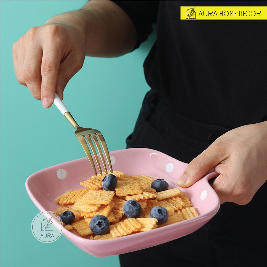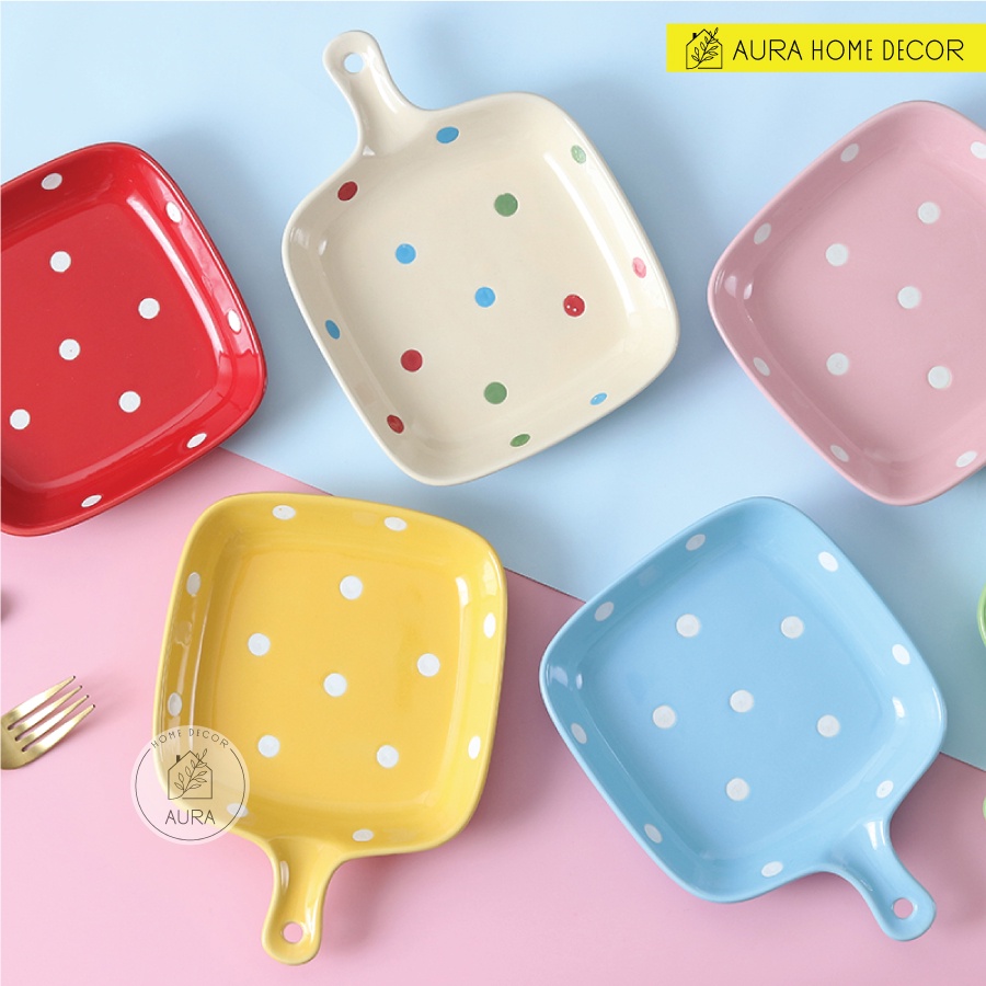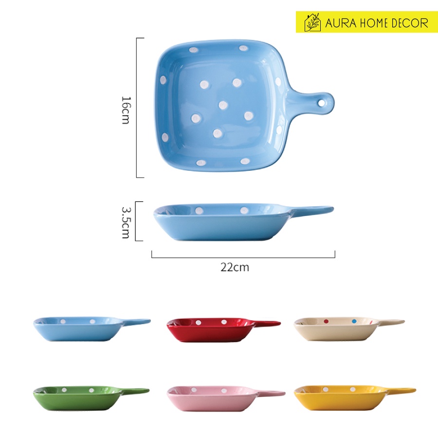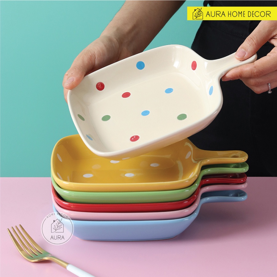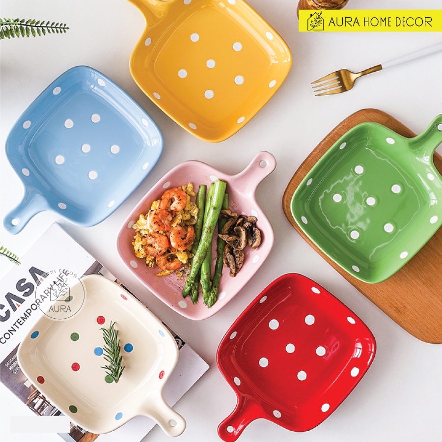 Nhà cửa & Đời sống > Bộ đồ bàn ăn > Dĩa || Đĩa nướng, khay nướng có tay cầm họa tiết chấm bi xinh xắn nhiều màu sắc - Chất liệu gốm sứ an toàn sức khỏeCòn hàng