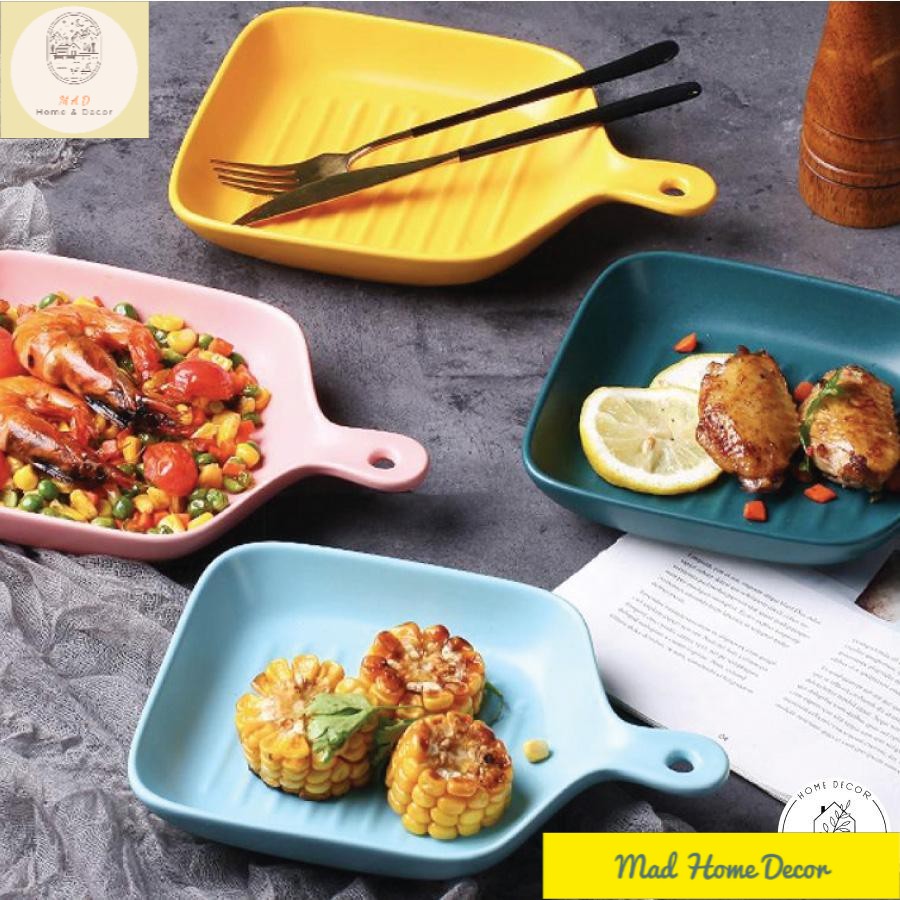 Giới thiệu [Mã LIFE20KALL giảm 10% đơn 50K] Đĩa nướng sứ chịu nhiệt có tay cầm size 22.8*16 cm