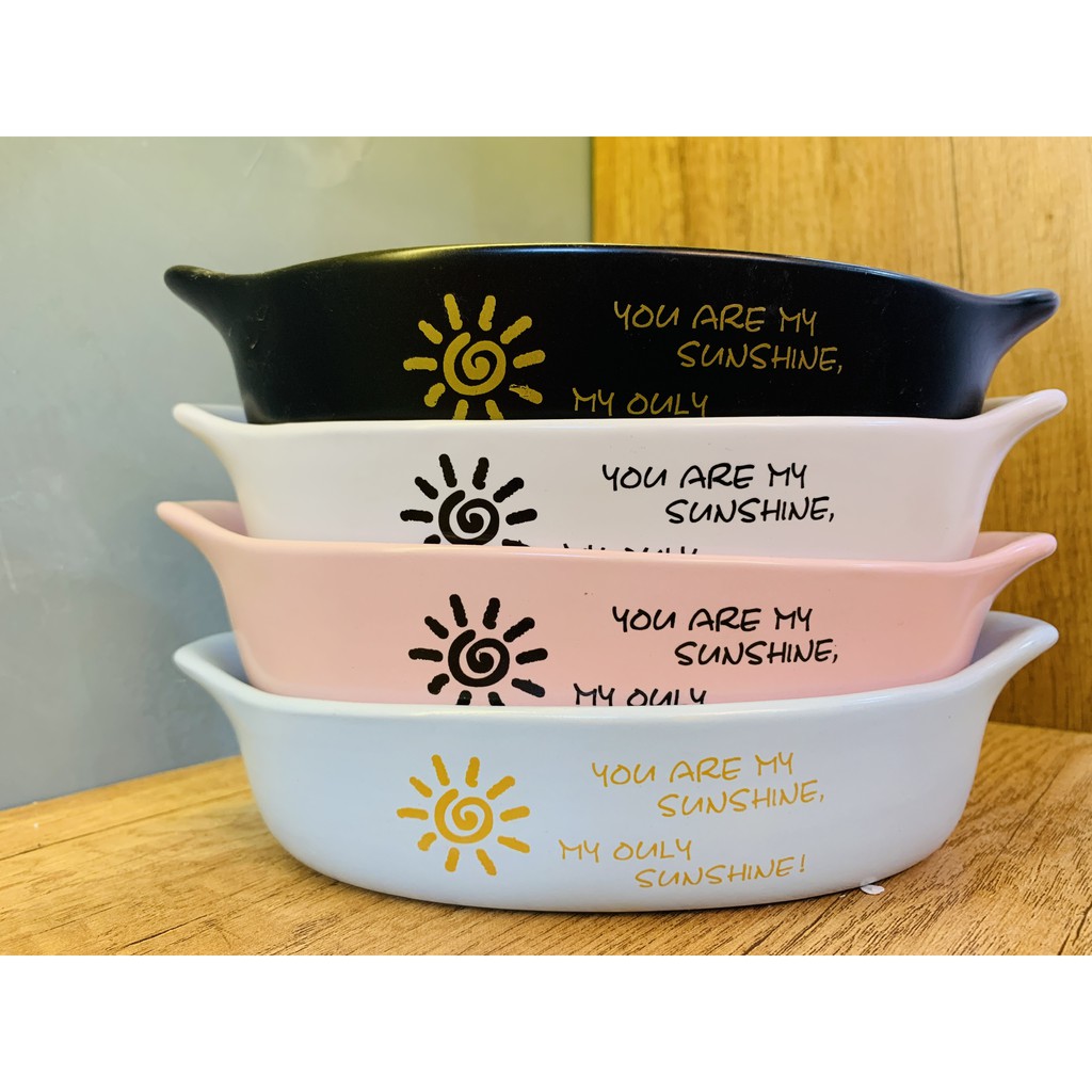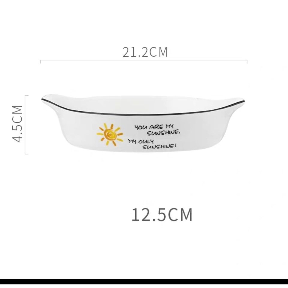 Nhà cửa & Đời sống > Bộ đồ bàn ăn > Dĩa || Đĩa nướng vintage trắng họa tiết mặt trời - có tay cầm - cao cấp - SẴN HÀNGCòn hàng