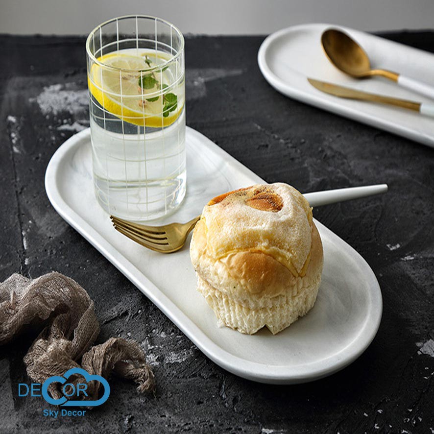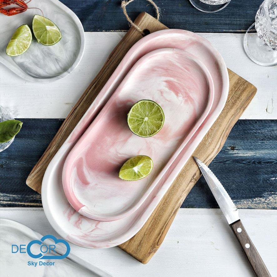 Nhà cửa & Đời sống > Bộ đồ bàn ăn > Dĩa || Dĩa oval trơn vân đá chụp ảnh đồ ăn, thức uống, trang sức, mỹ phẩm, sử dụng hàng ngày - Sky DecorCòn hàng