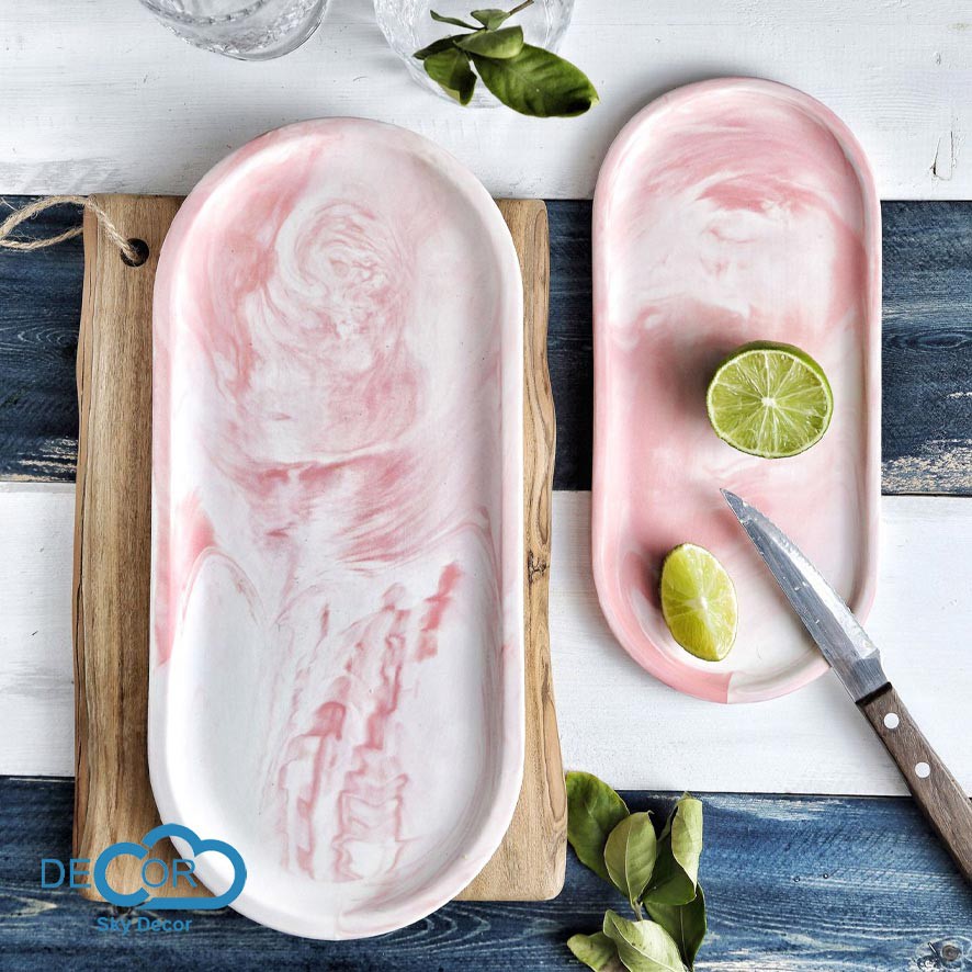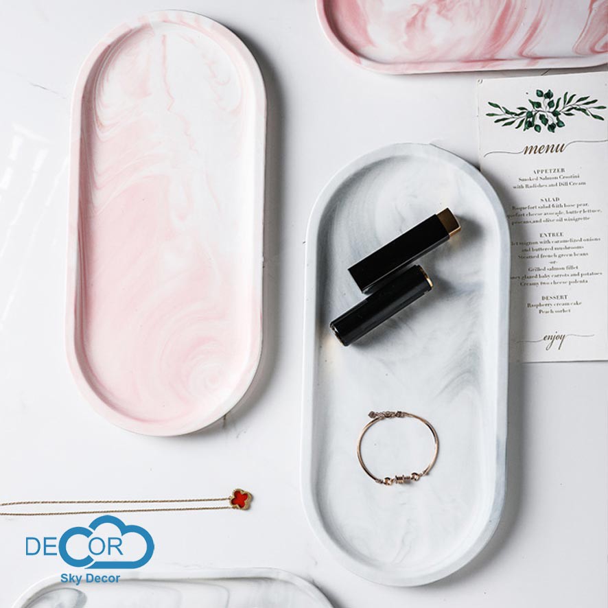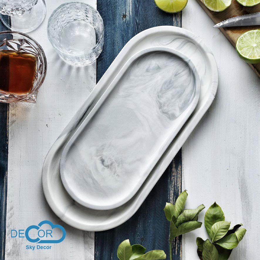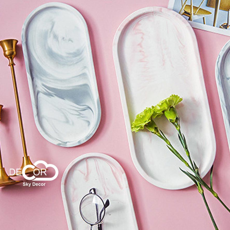 Dĩa oval trơn vân đá chụp ảnh đồ ăn, thức uống, trang sức, mỹ phẩm, sử dụng hàng ngày - Sky Decor