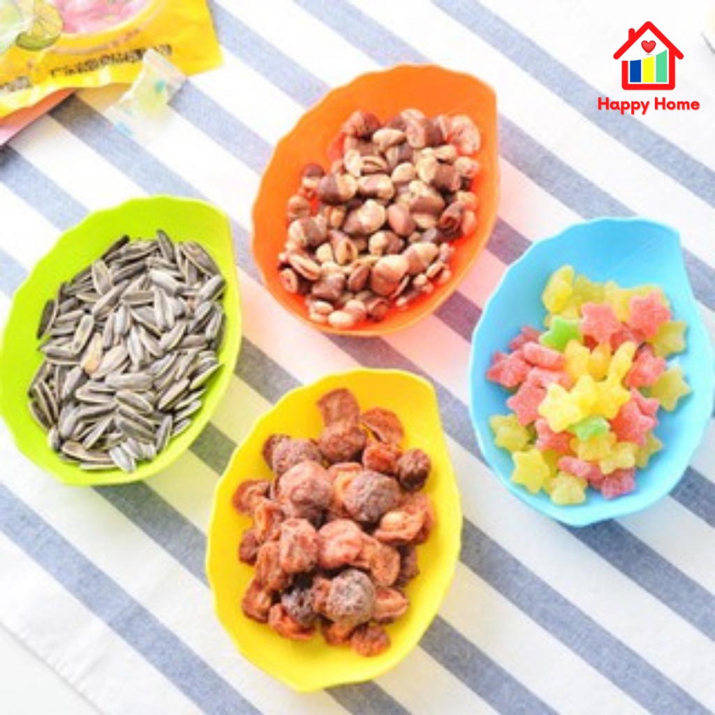- Đĩa phíp đựng hoa quả hình chiếc lá chứa bánh kẹo mứt đồ ăn vặt loại to Happy Home dùng để đựng đồ ăn, gia vi, nước chấm.
