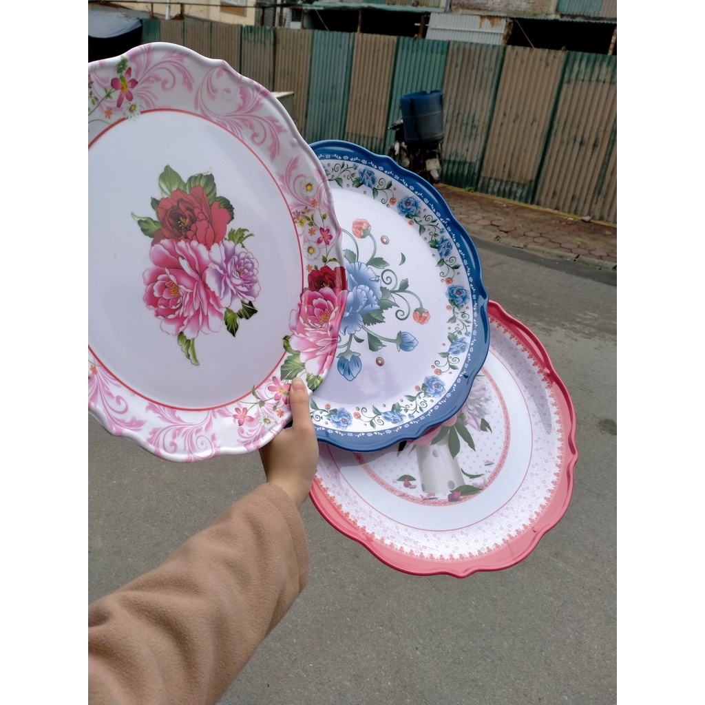 ĐĨA PHÍP BÀY MÂM NGŨ QUẢ CỰC ĐẸP - BÁNH KẸO HOA QUẢ- Chất liệu phíp cao cấp dầy dặn hình hoa hồng