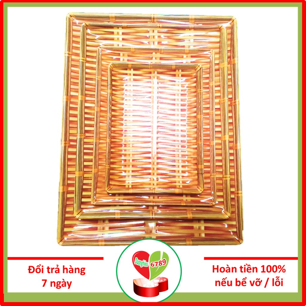 Đĩa Phíp Nhựa Giả Mây, Mẹt Giả Tre Chữ Nhật Đủ Cỡ, Đồ Nhà Hàng, Nhà Bếp - Duonghieu6789- Sản phẩm dùng để đựng hoa quả, đồ ăn, bún mẹt,... trong gia đình các nhà hàng khách sạn