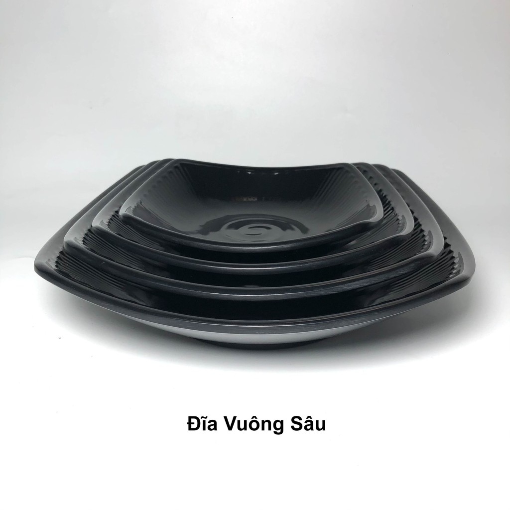 Nhà cửa & Đời sống > Bộ đồ bàn ăn > Dĩa || Đĩa Phíp Vuông [CAO CẤP] [SANG TRỌNG]/Đĩa Vuông Sâu Vân Thạch ĐENCòn hàng