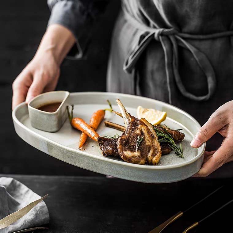 Đĩa phong cách Bắc Âu sang trọng, ăn tiệc cao cấp, salad, ăn chính, bát nhỏ để sốt kèm