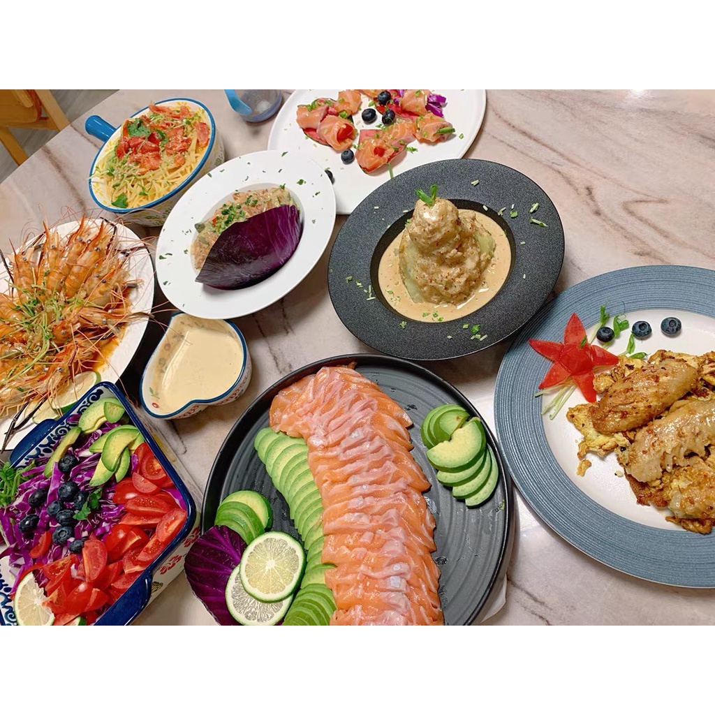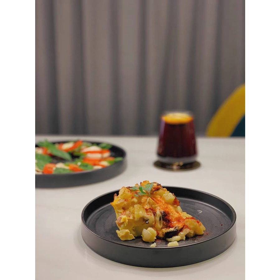 Đĩa phong cách Bắc Âu sang trọng, viền vàng, bát đĩa ăn tiệc cao cấp, salad, ăn chính, 2 màu trắng và đen