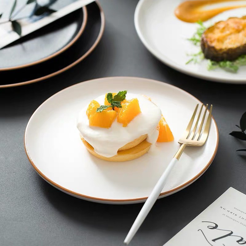 Đĩa phong cách Bắc Âu sang trọng, viền vàng, bát đĩa ăn tiệc cao cấp, đĩa salad, đĩa chính, đĩa trắng, set 3 đĩa