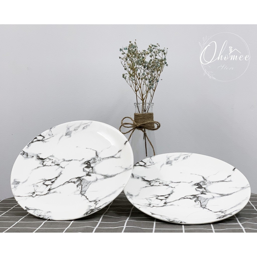 Nhà cửa & Đời sống > Bộ đồ bàn ăn > Dĩa || Đĩa phong cách Bắc Âu - vân đá tự nhiên đẹp, dễ thươngCòn hàng