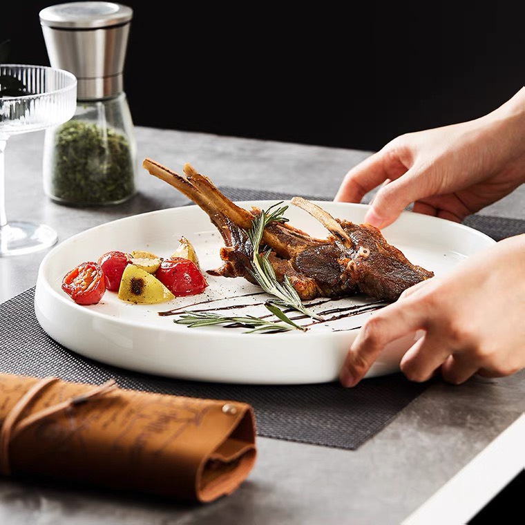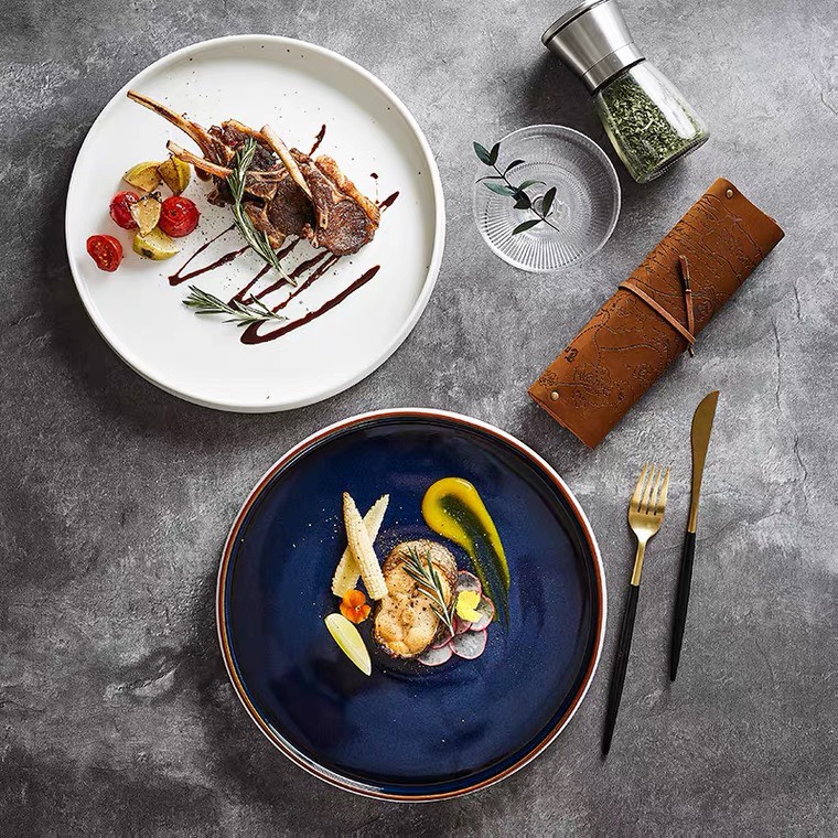 Giới thiệu Đĩa phong cách nhà hàng, ăn tiệc cao cấp sang trọng, size đĩa ăn salad và ăn chính, hai màu trắng và xanh