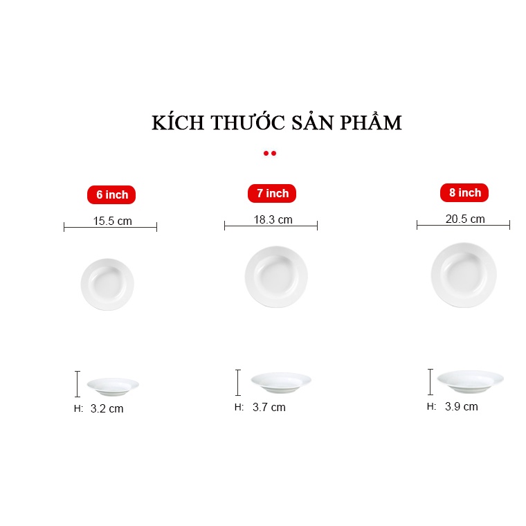 + Size 8inch: Chiều rộng 20.5cm, cao 3.9cm
