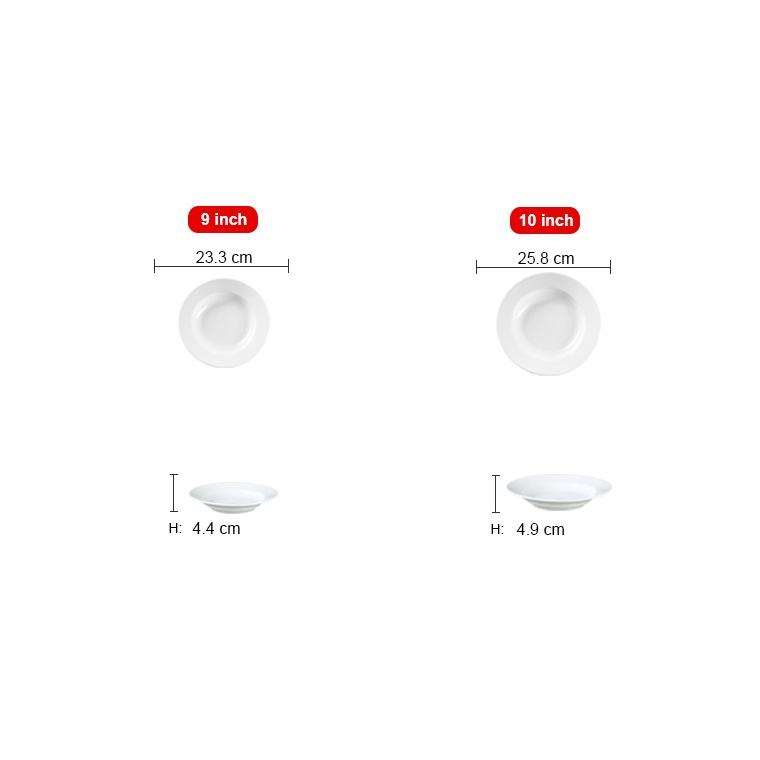 + Size 9inch: Chiều rộng 23.3cm, cao 4.4cm