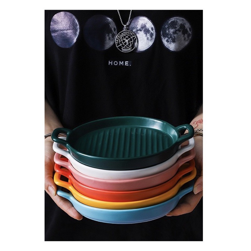 Đĩa sứ 2 quai, khay nướng có quai kiểu Bắc Âu