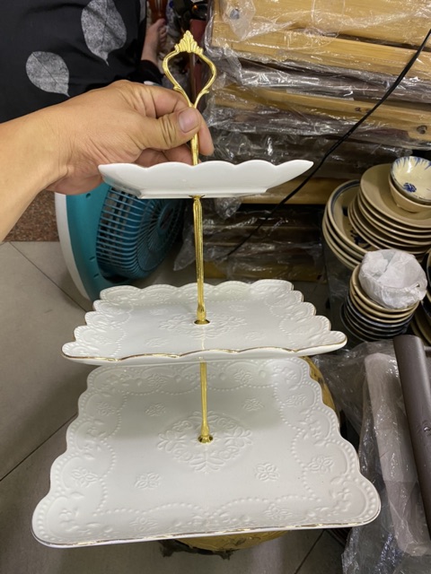 Bộ dĩa sứ 3 tầng cao cấp