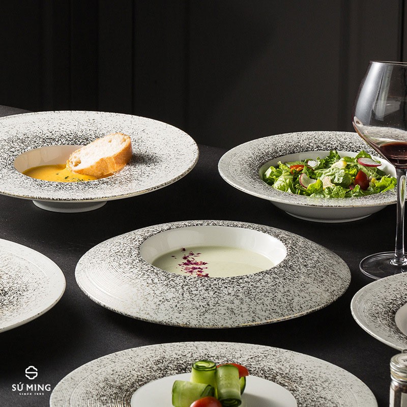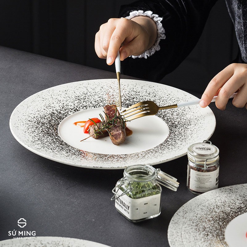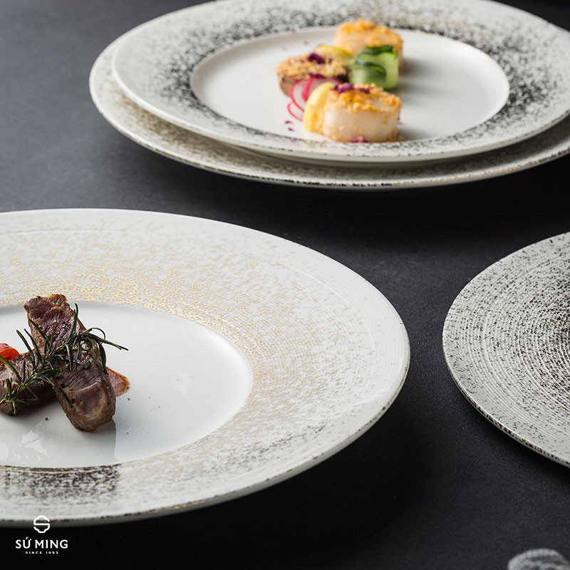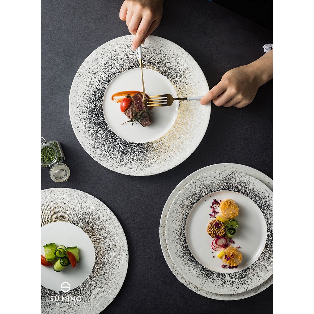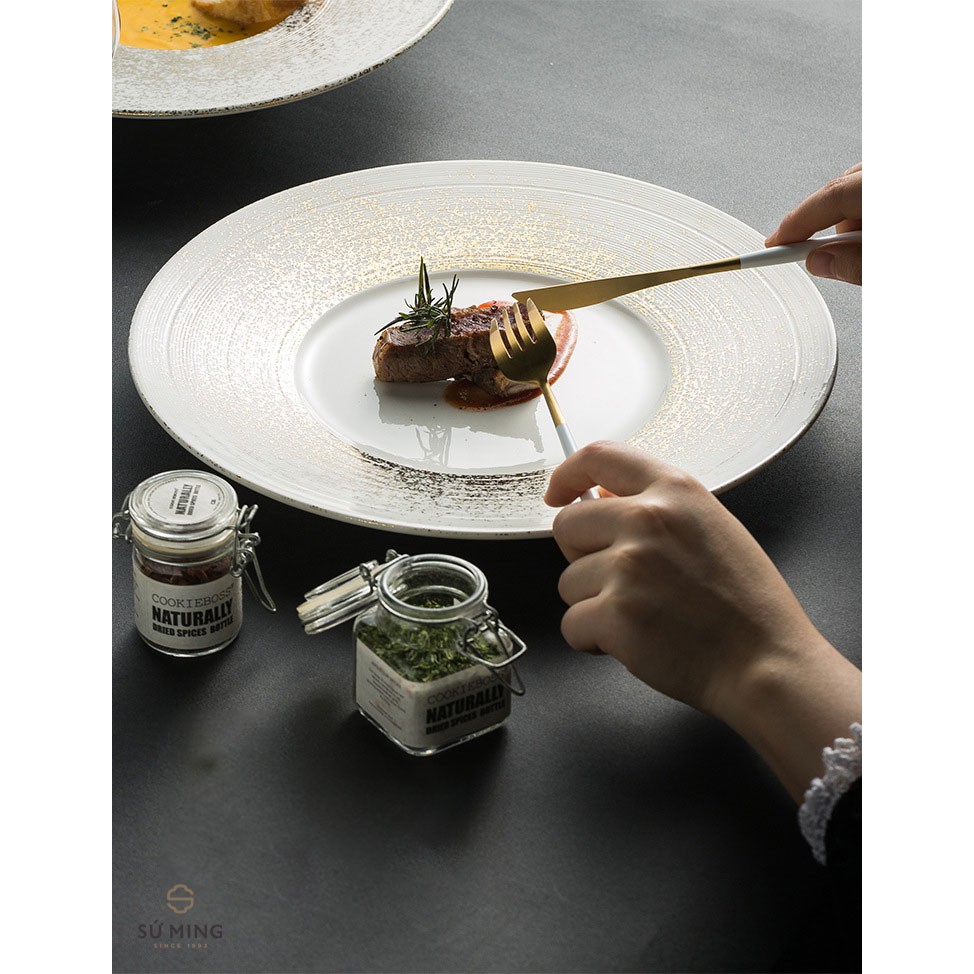 Đĩa Sứ Ăn Bít Tết, Đĩa Sứ Ăn Đồ Âu Cách Điệu Nhũ Vàng Chất Lượng Cao