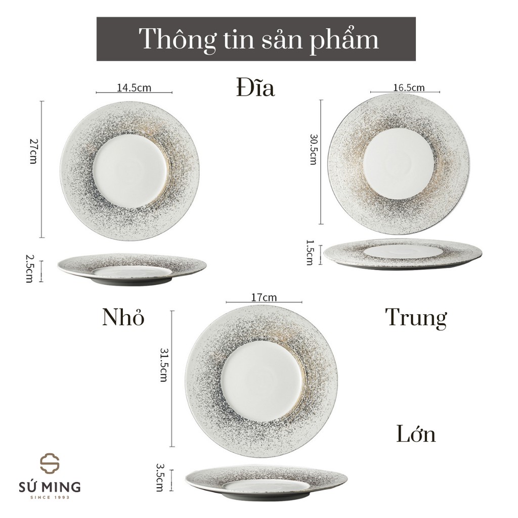 Giới thiệu Đĩa Sứ Ăn Bít Tết, Đĩa Sứ Ăn Đồ Âu Cách Điệu Nhũ Vàng Chất Lượng Cao