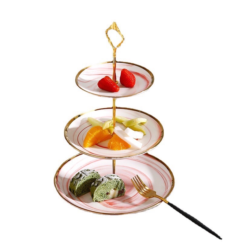 Nhà cửa & Đời sống > Bộ đồ bàn ăn > Dĩa || Đĩa sứ ba tầng vân đá, khay sứ ba tầng mầu hồng cao cấp Huy decorCòn hàng