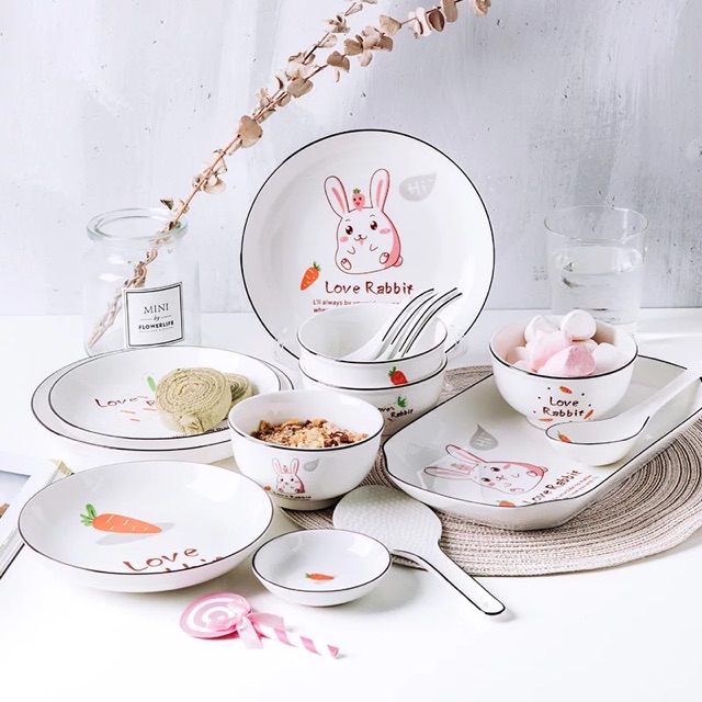 Tên SP: Đĩa sứ, bát sứ, thìa sứ, tô sứ hình LOVE RABBIT chú thỏ tinh nghịch ( bán lẻ) - VS379Mã SP: VS379