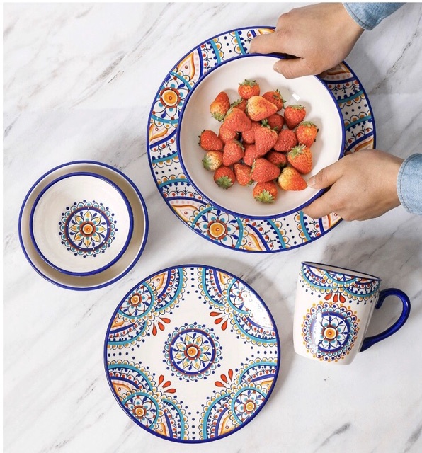 💐Một phong cách rất Châu Âu, rất Tây Ban Nha💐☘Bộ bát đĩa vẽ tay thủ công với họa tiết siêu đẹp đến từ nghệ nhân làng gốm Giang Tây Trung Quốc. Sản phẩm được xuất các nước Châu Âu