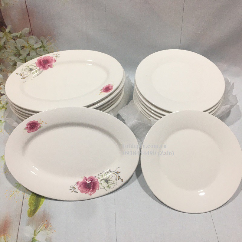 Đĩa sứ bầu dục đĩa sứ tròn loại dày giá rẻ