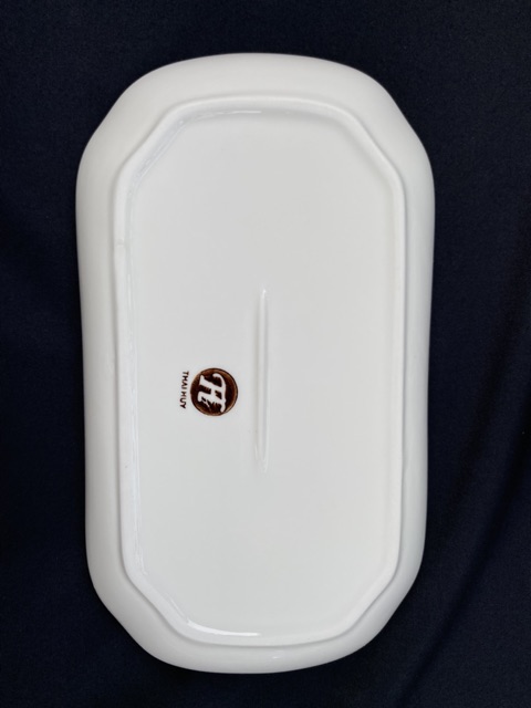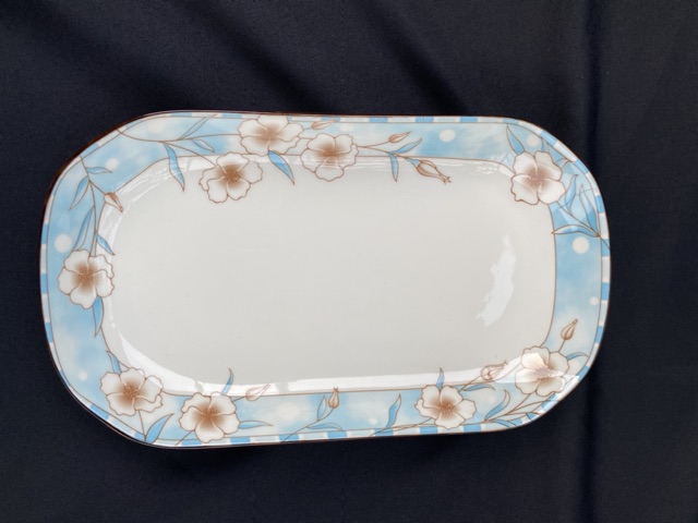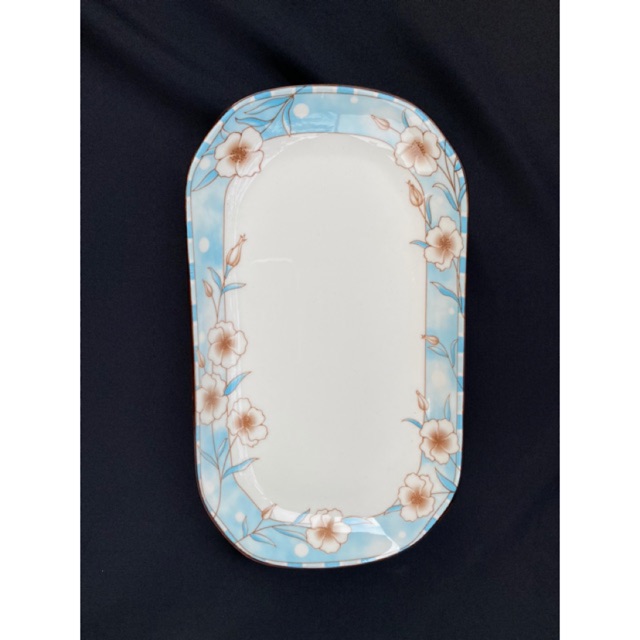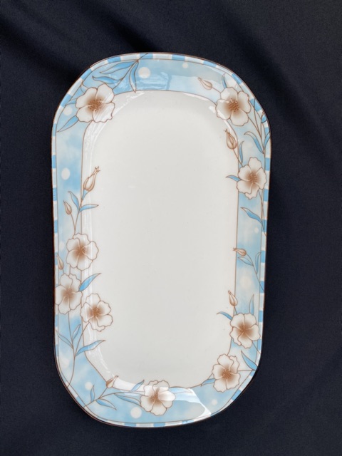 Đĩa sứ bầu dục đựng gà hoa xanh Cao Cấp