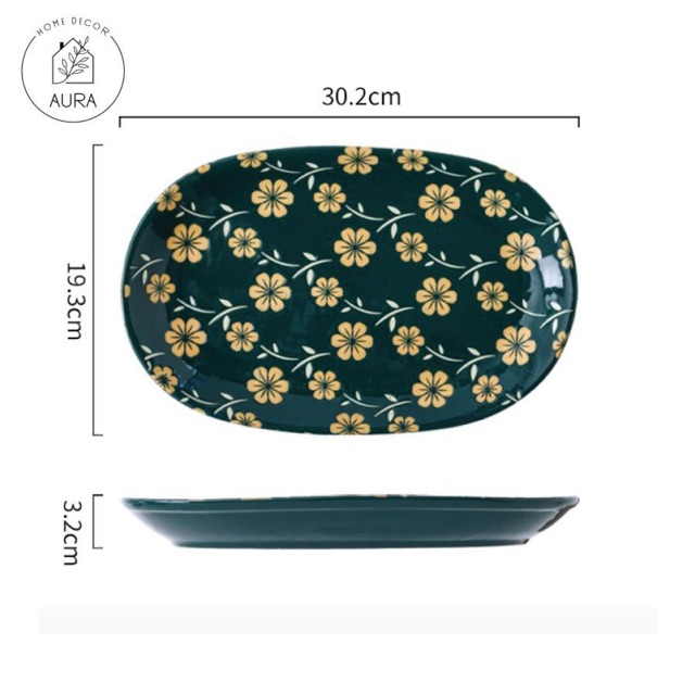 👉Đĩa bầu dục phong cách Bắc Âu với nhiều hình với tone: Xanh họa tiết vàng, Trắng và Đen họa tiết hồng.Thông tin chi tiết đĩa bầu dục:
