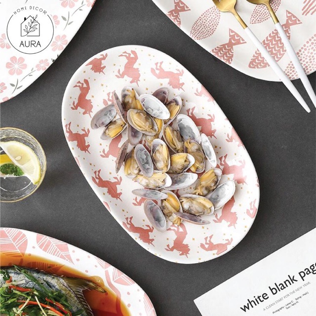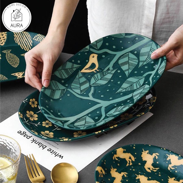 Nhà cửa & Đời sống > Bộ đồ bàn ăn > Dĩa || Đĩa sứ bầu dục nhiều họa tiết cao cấpCòn hàng