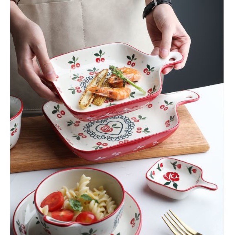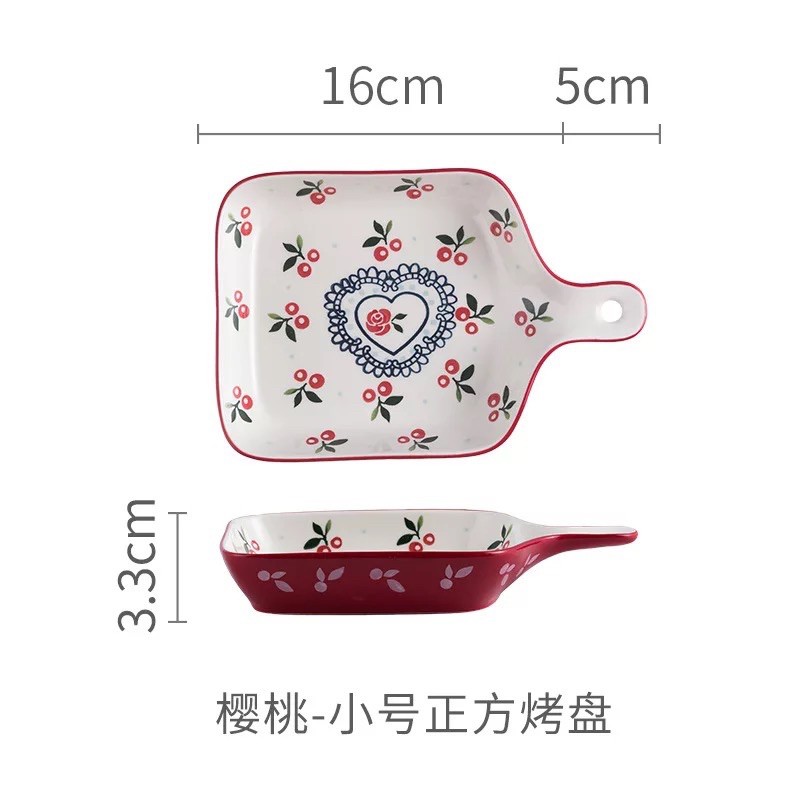 Nhà cửa & Đời sống > Bộ đồ bàn ăn > Dĩa || Đĩa sứ Cherry dáng vuông có tay cầm dài decor bàn ăn, trang trí món ănCòn hàng