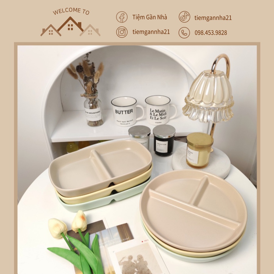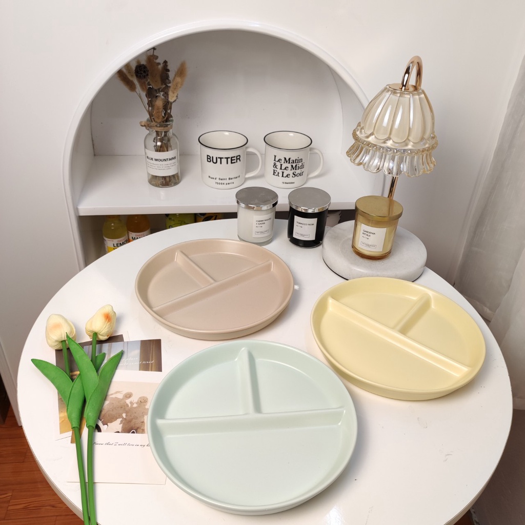 Đĩa sứ chia 2 ngăn 3 ngăn màu pastel siêu xinh đĩa chia ngăn phong cách Hàn Quốc