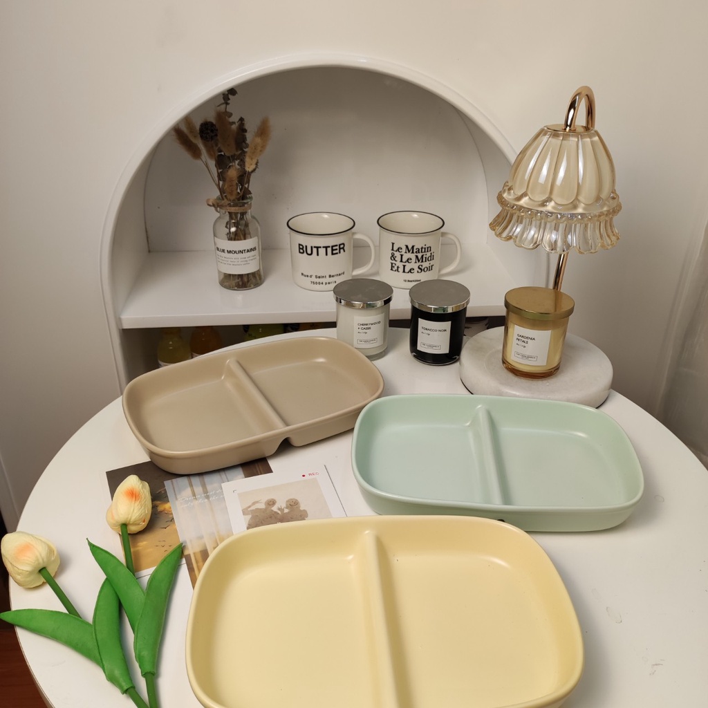 Nhà cửa & Đời sống > Bộ đồ bàn ăn > Dĩa || Đĩa sứ chia 2 ngăn 3 ngăn màu pastel siêu xinh đĩa chia ngăn phong cách Hàn QuốcCòn hàng