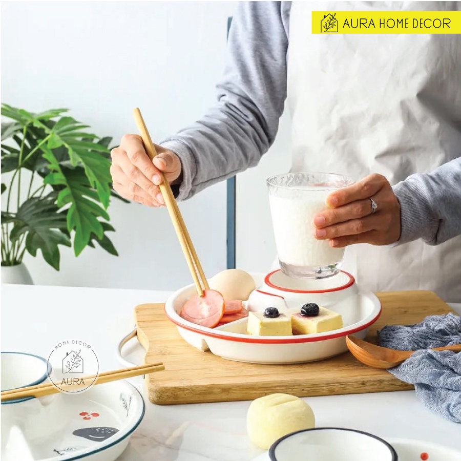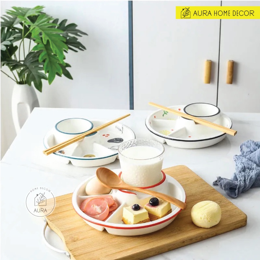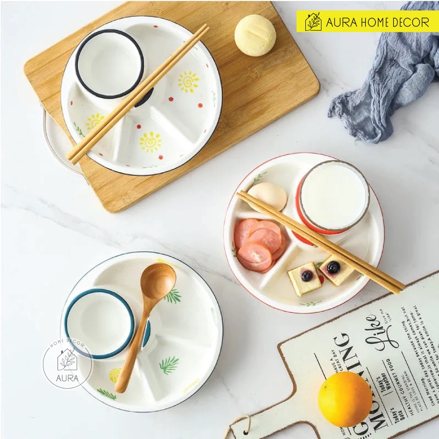 Nhà cửa & Đời sống > Bộ đồ bàn ăn > Dĩa || Đĩa sứ chia ngăn đựng đồ ăn và nước chấm/sauce hoặc cốc uống nước cực xinh và tiện lợi cho combo ăn sáng tại nhàCòn hàng