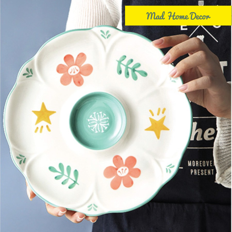 Nhà cửa & Đời sống > Bộ đồ bàn ăn > Dĩa || Đĩa sứ chia ô hình hoa cực xinh có ngăn đựng tương ớt, tương cà, nước mắm,gia vịCòn hàng