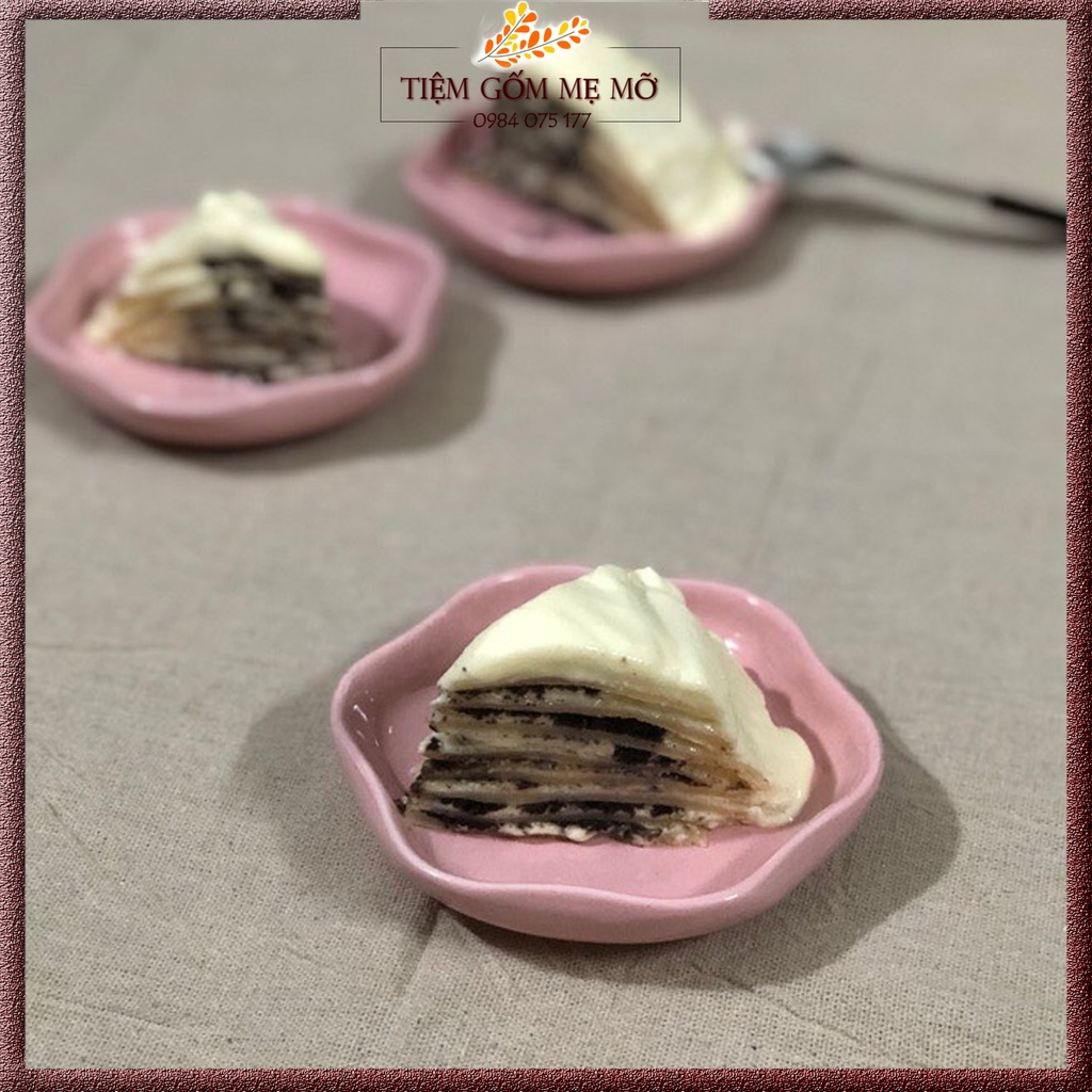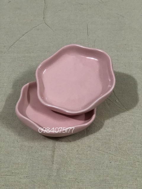 Đĩa sứ decor đĩa trang trí thức ăn hình bông hoa màu hồng pastel gốm sứ Bát Tràng