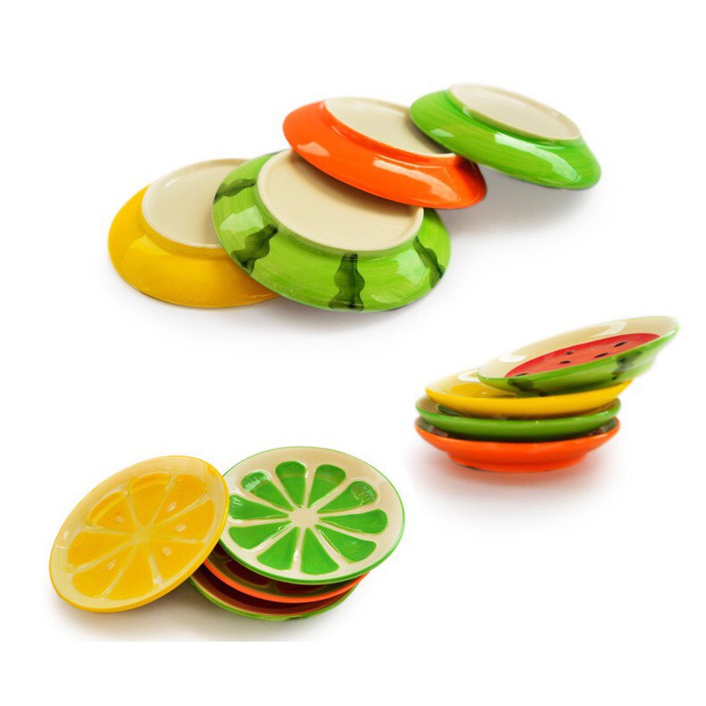 Đĩa Sứ, Đĩa Chấm Hoa Quả 4 Màu Cực Hot, Decor Bàn Ăn Dễ Thương