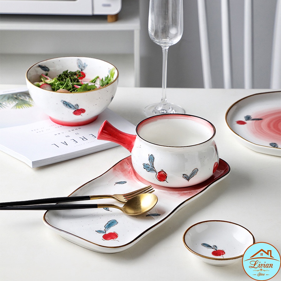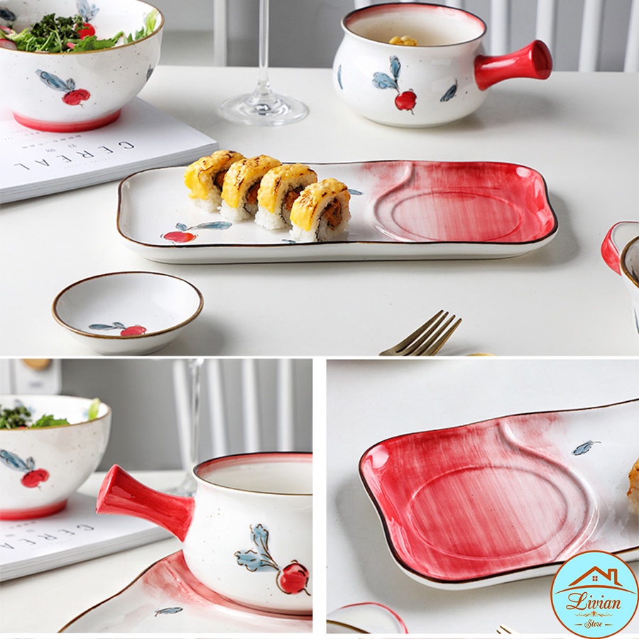 Nhà cửa & Đời sống > Bộ đồ bàn ăn > Dĩa || Đĩa sứ, đĩa decor bàn ăn họa tiết củ cải đỏ nhiều kích thước [ HÀNG SẴN]Còn hàng