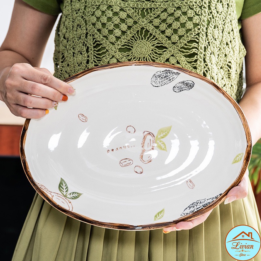 Nhà cửa & Đời sống > Bộ đồ bàn ăn > Dĩa || Đĩa sứ, đĩa decor , đĩa bầu dục đựng cá họa tiết dứa cỏ 3 lá siêu xinh [HÀNG CÓ SẴN]Còn hàng