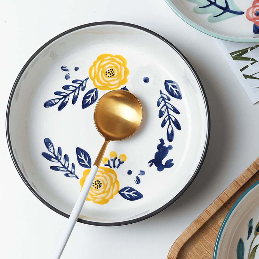 + Đĩa sứ có các họa tiết hoa lá vẽ tay nổi bật với vẻ đẹp tự nhiên rất nhã nhặn và tinh tế