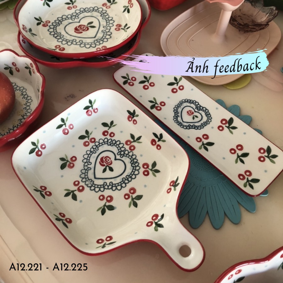 Nhà cửa & Đời sống > Bộ đồ bàn ăn > Dĩa || Đĩa sứ, đĩa sứ họa tiết Cherry có tay cầm phong cách Hàn Quốc dùng cho bàn ăn và decorCòn hàng