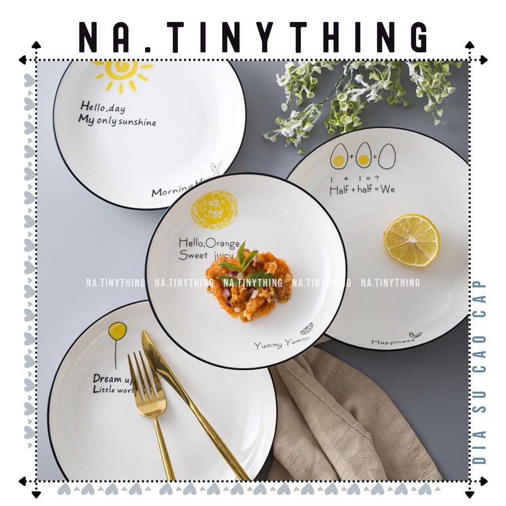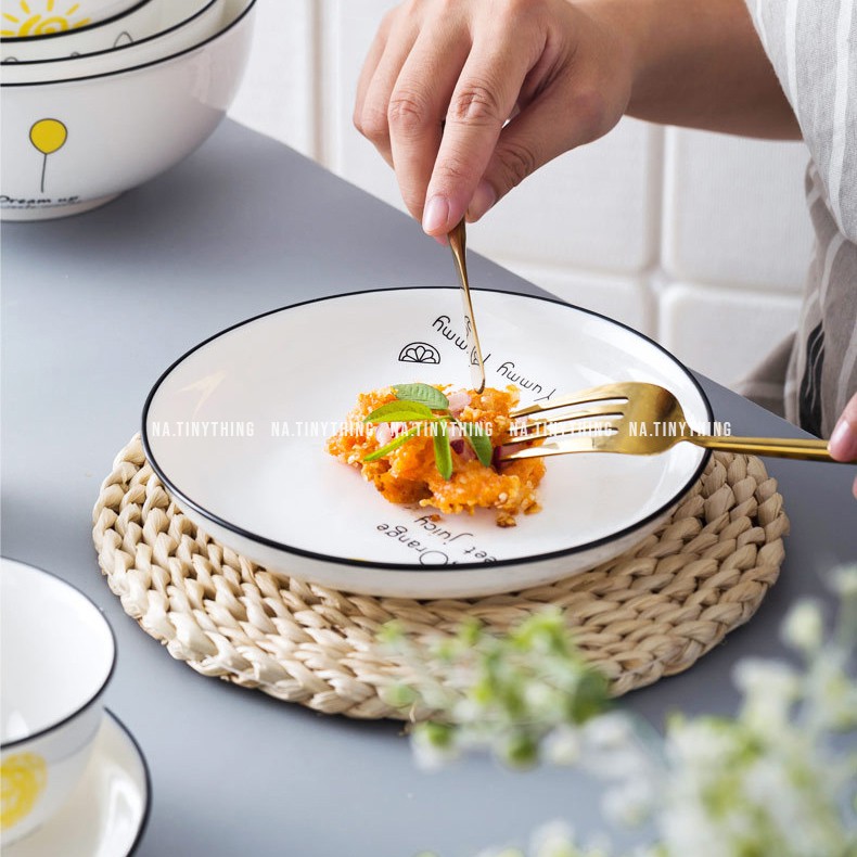 Đĩa sứ, dĩa sứ tròn tráng men cao cấp hoạ tiết dễ thương phong cách Hàn Quốc NA0044