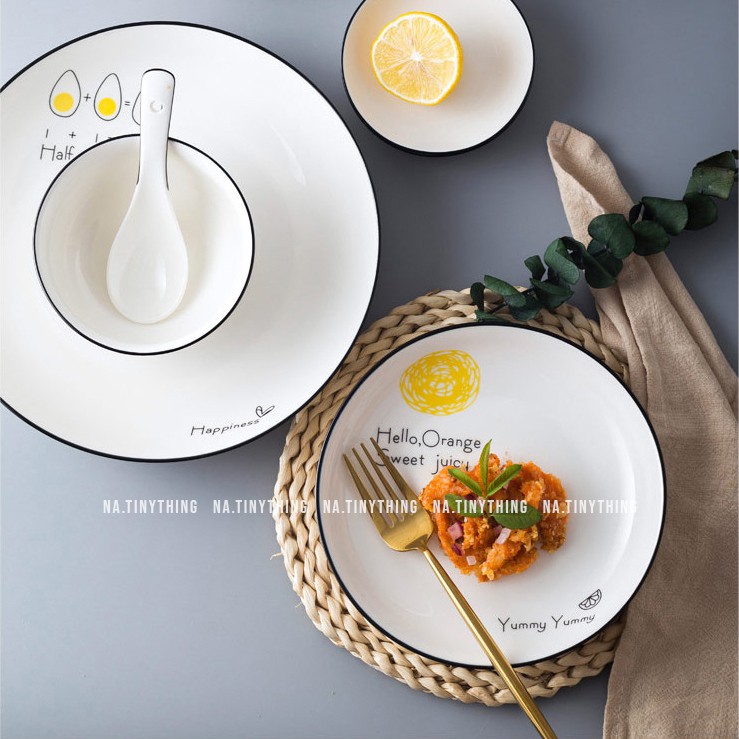Nhà cửa & Đời sống > Bộ đồ bàn ăn > Dĩa || Đĩa sứ, dĩa sứ tròn tráng men cao cấp hoạ tiết dễ thương phong cách Hàn Quốc NA0044Còn hàng
