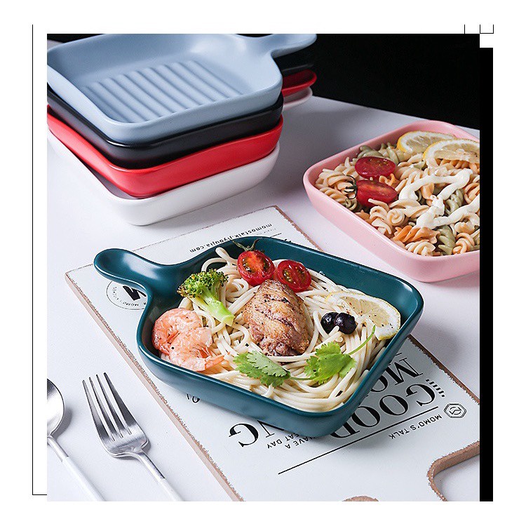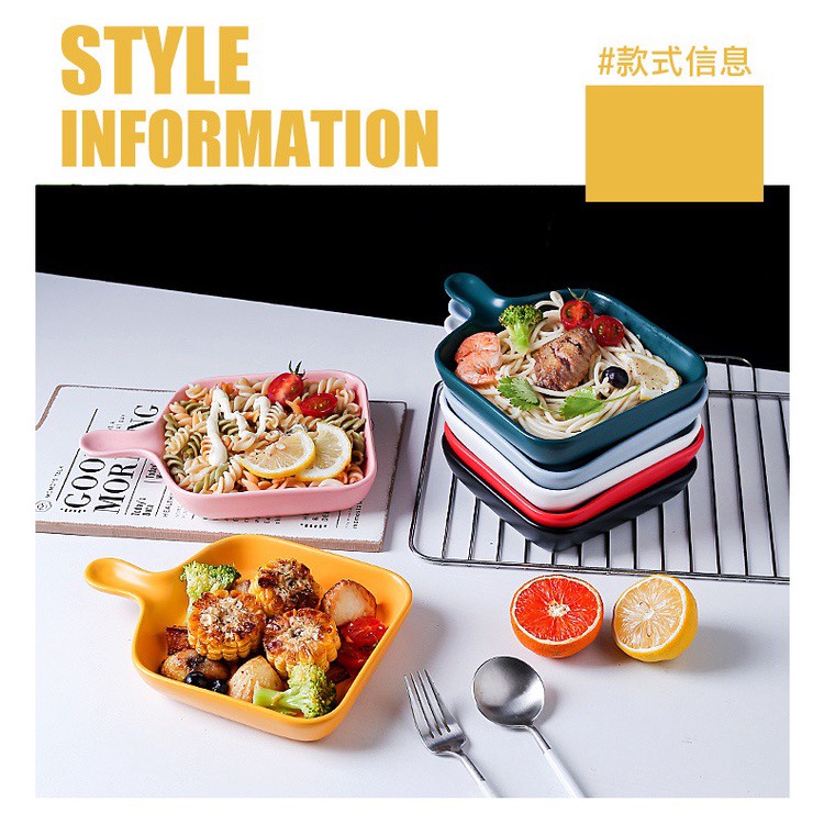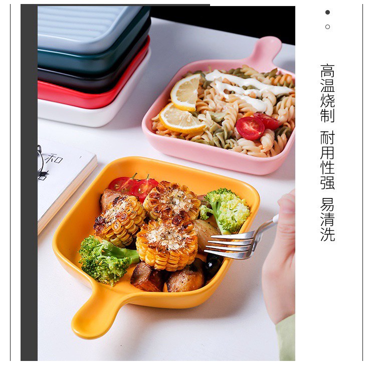 Nhà cửa & Đời sống > Bộ đồ bàn ăn > Dĩa || Dĩa sứ, đĩa sứ vuông ceramic có tay cầm phong cách Bắc Âu cho món ăn hấp dẫn, trang trí bàn ăn đẹp mắt 19x23cmCòn hàng