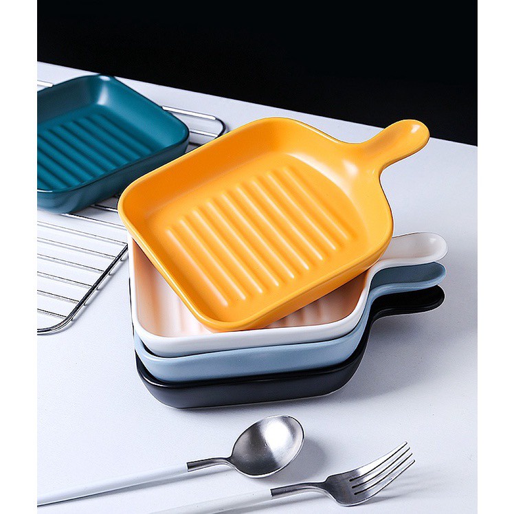 - Dĩa sứ, đĩa sứ vuông ceramic có tay cầm phong cách Bắc Âu là một món phụ kiện bàn ăn dễ thương, xinh xắn cho các chị em, mẹ và bé.