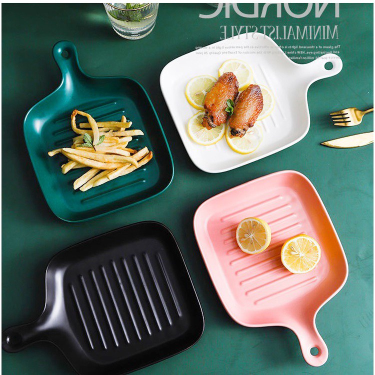 Dĩa sứ, đĩa sứ vuông ceramic có tay cầm phong cách Bắc Âu cho món ăn hấp dẫn, trang trí bàn ăn đẹp mắt 19x23cm