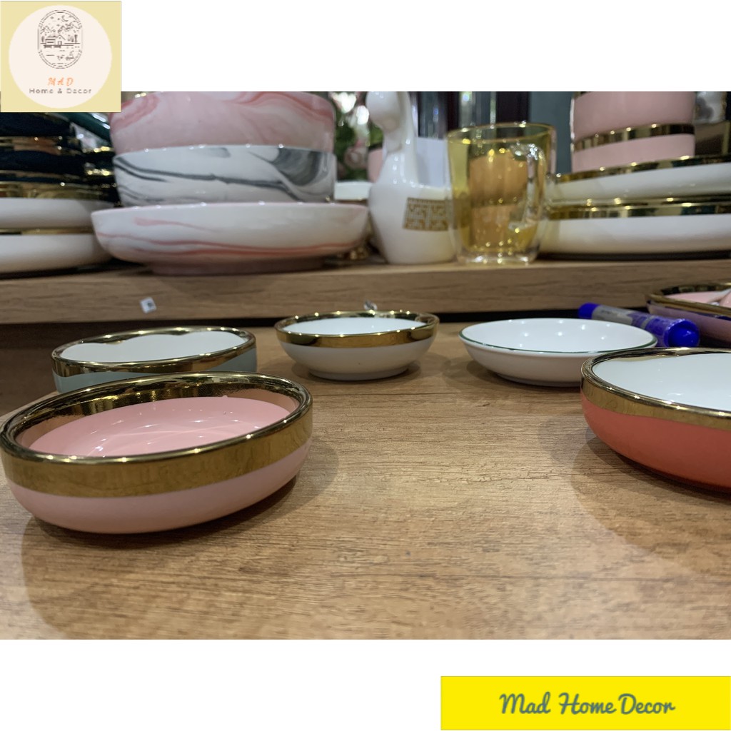 Nhà cửa & Đời sống > Bộ đồ bàn ăn > Tô || Đĩa Sứ Đựng Gia Vị, Nước Chấm Viền Vàng Cao CấpCòn hàng