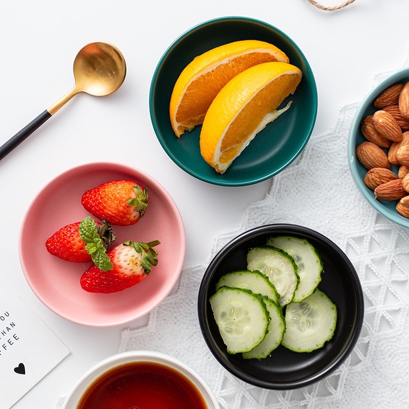 Nhà cửa & Đời sống > Bộ đồ bàn ăn > Dĩa || Đĩa sứ gia vị màu pastel 9cm, chén đựng nước chấm đồ ăn Kèm sứ cao cấp, bát gia vị nhiều màuCòn hàng